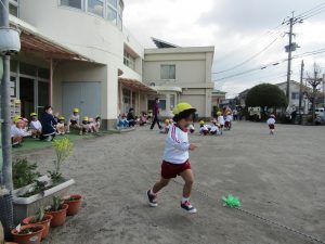 マラソン大会の試走をしました 2021.02.15 2月18日(木)に、マラソン大会を計画しています。今日は、その試走(リハーサル)を実施しました。まず、準備運動をして、最初にC・Dクラスさんが園庭を走りました。その後、Bクラスさんが園外を吉野中学校のところまでの往復を走りました。最後に、Aクラスさんが園外を吉野公民館のところまでの往復を走りました。園児たちは、これまで登園したらすぐに園庭を走って練習してきました。今日は、どの子も最後まで走りきることができて、良かったです。18日が本番です。あと2日練習を頑張って、本番でも頑張りましょう。